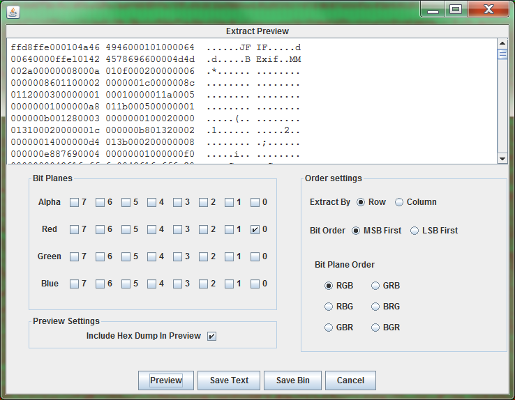 此外本题还有较为取巧的方法,Stegsolve打开原png图片后用Data Extract功能,选择Red的0位: